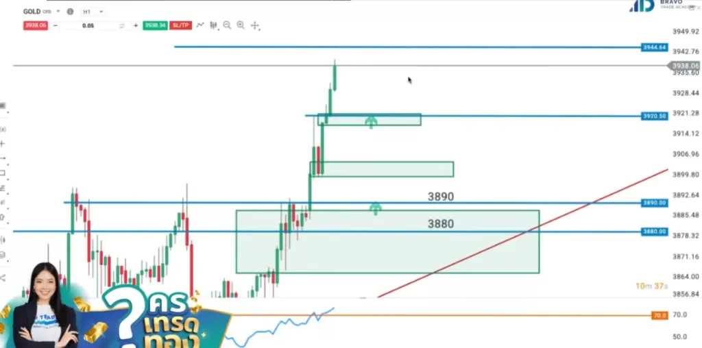 - ข้อควรระวัง: แม้จะมีโอกาสย่อ แต่การย่ออาจจะ น้อยมาก หากมีสัญญาณกลับตัวบริเวณ 3890 – 3900 ก็สามารถเข้า Buy ได้เลย