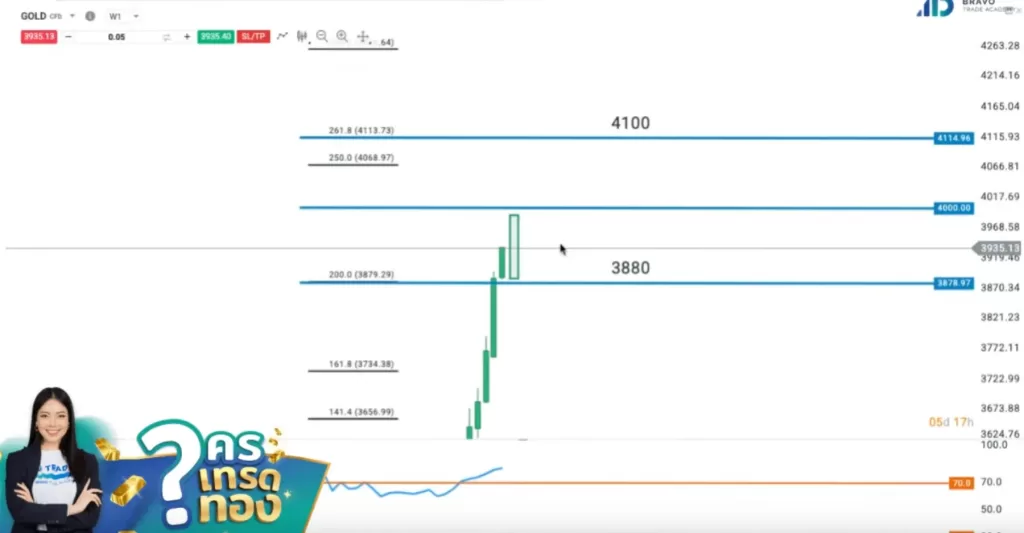 - เป้าหมายถัดไป: หาก 3880 กลายเป็นทางผ่าน เป้าหมายต่อไปของทองคำคือระดับ 4113 ดอลลาร์ (Fibo 261.8) ส่วนระดับ 4000 ดอลลาร์ อาจเป็นเพียงราคาจิตวิทยาหรือทางผ่านเท่านั้น